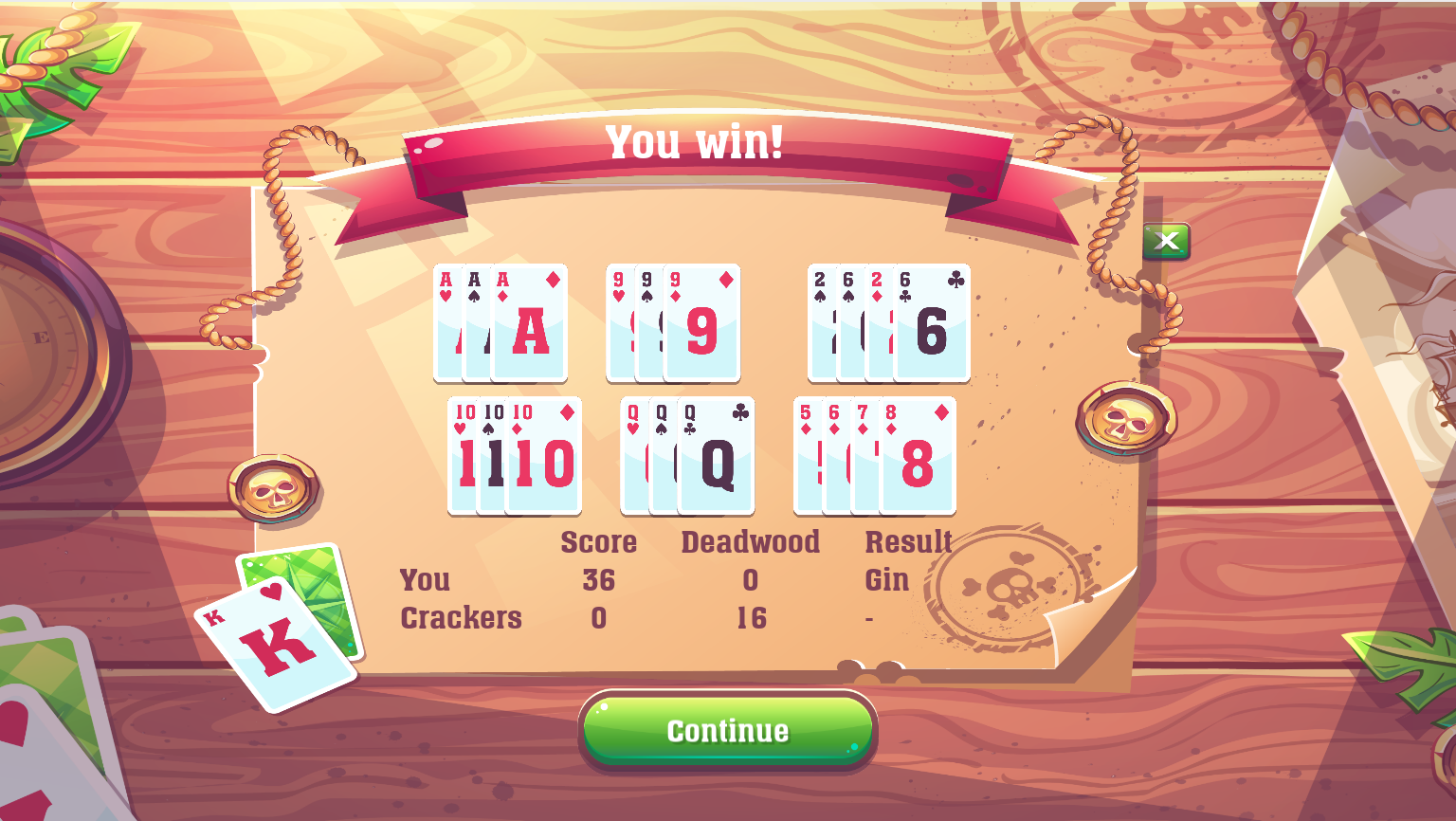 Draw 'N Plunder is Gin Rummy the way it was meant to be played, with no progression systems, no explosive jokers, just you, a deck of cards, and Crackers the parrot who's obnoxiously good at the game.